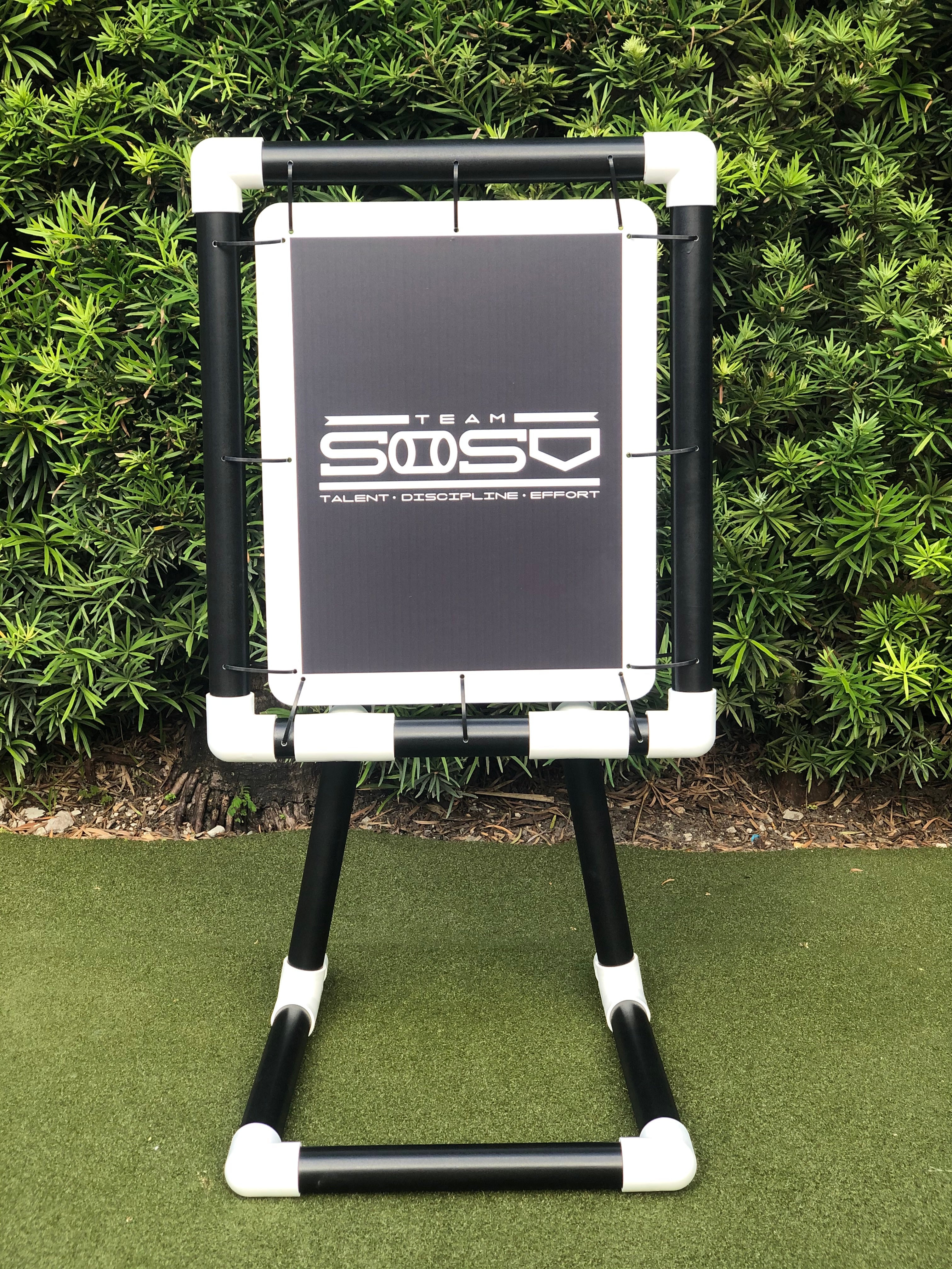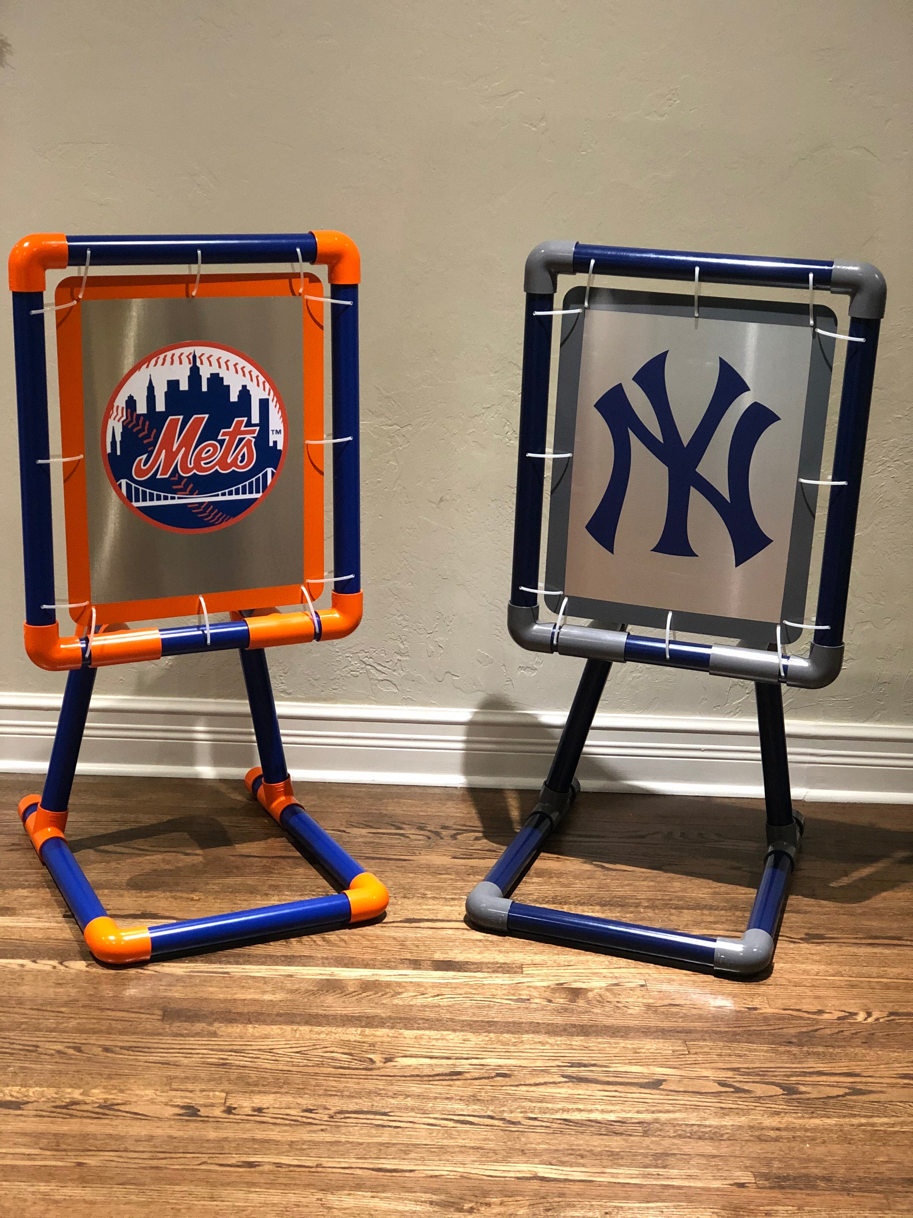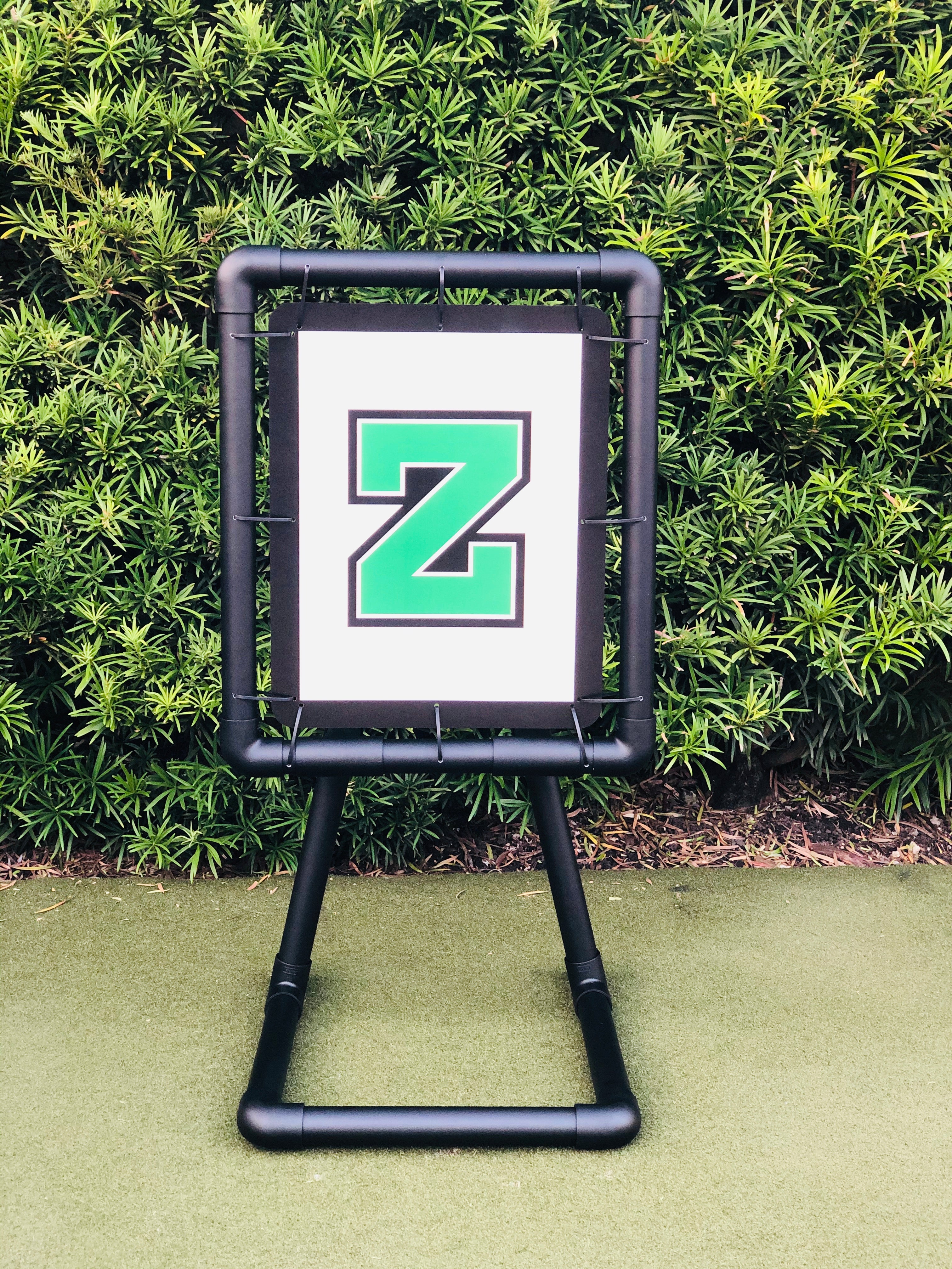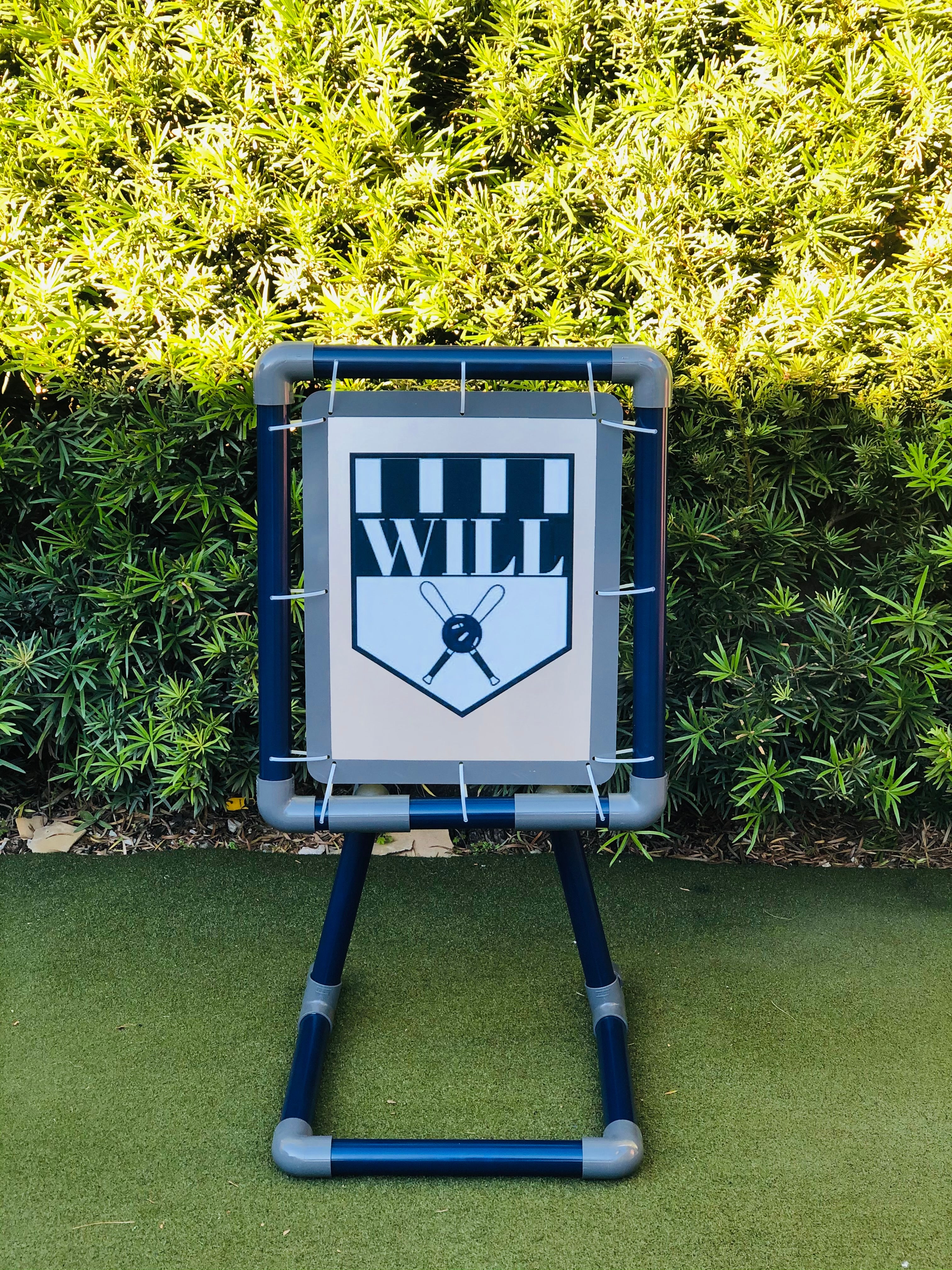 A custom handmade Wiffle Ball Strike Zone that is long lasting, durable and mobile.